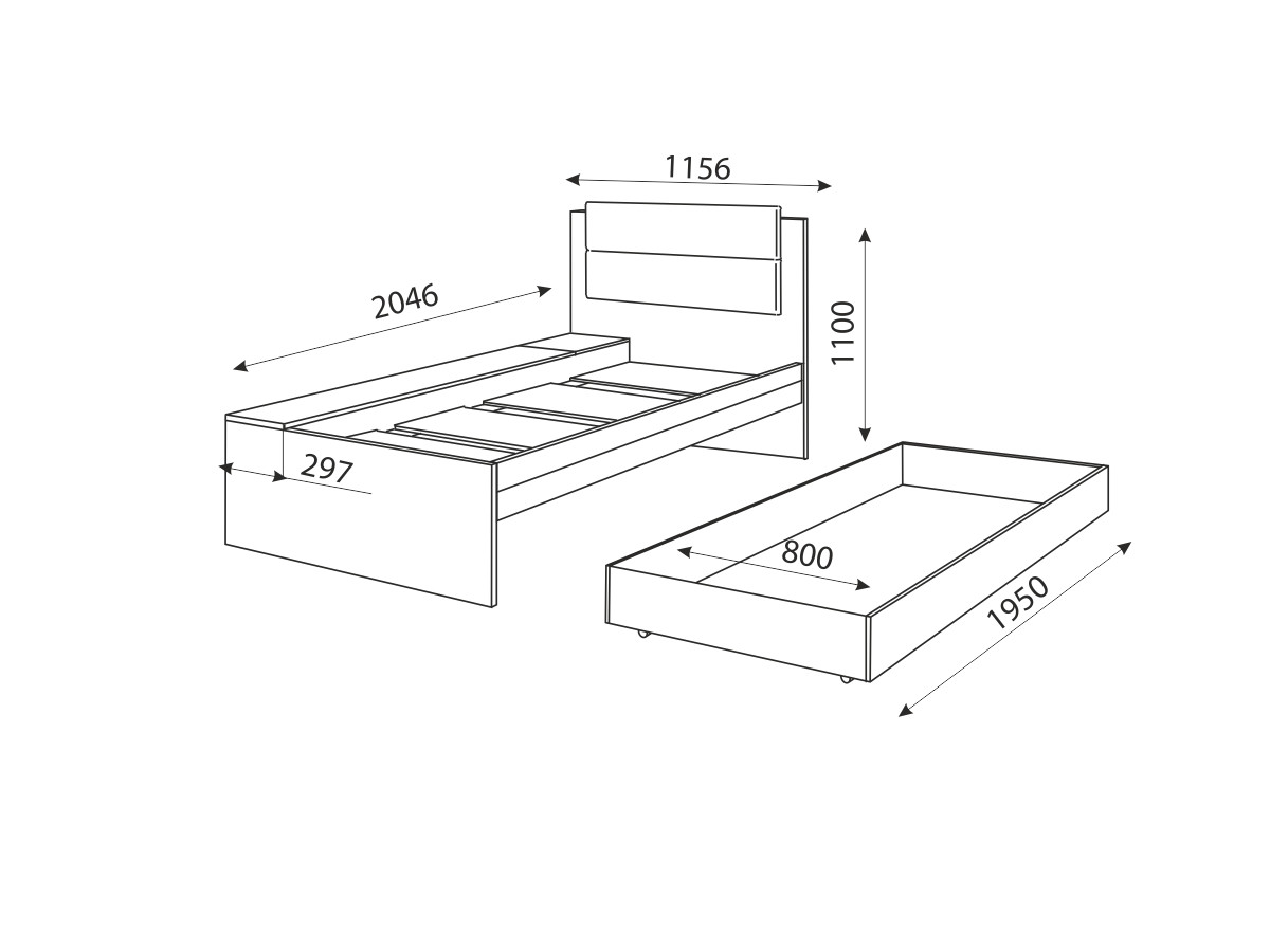 Спальное место: 800х2000 мм