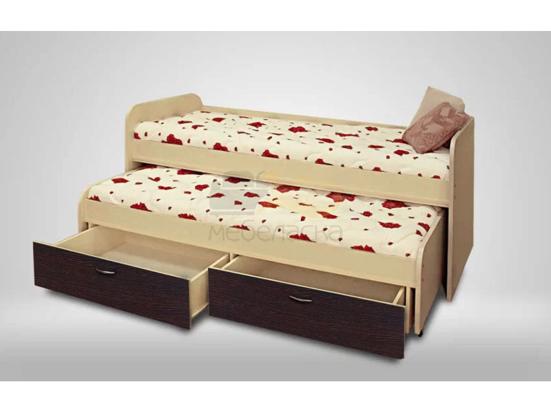 Двухъярусная кровать «Антошка» - компактное спальное место для двоих детей. Нижних ярус выдвигается на роликовых опорах и имеет два вместительных короба для белья и игрушек.