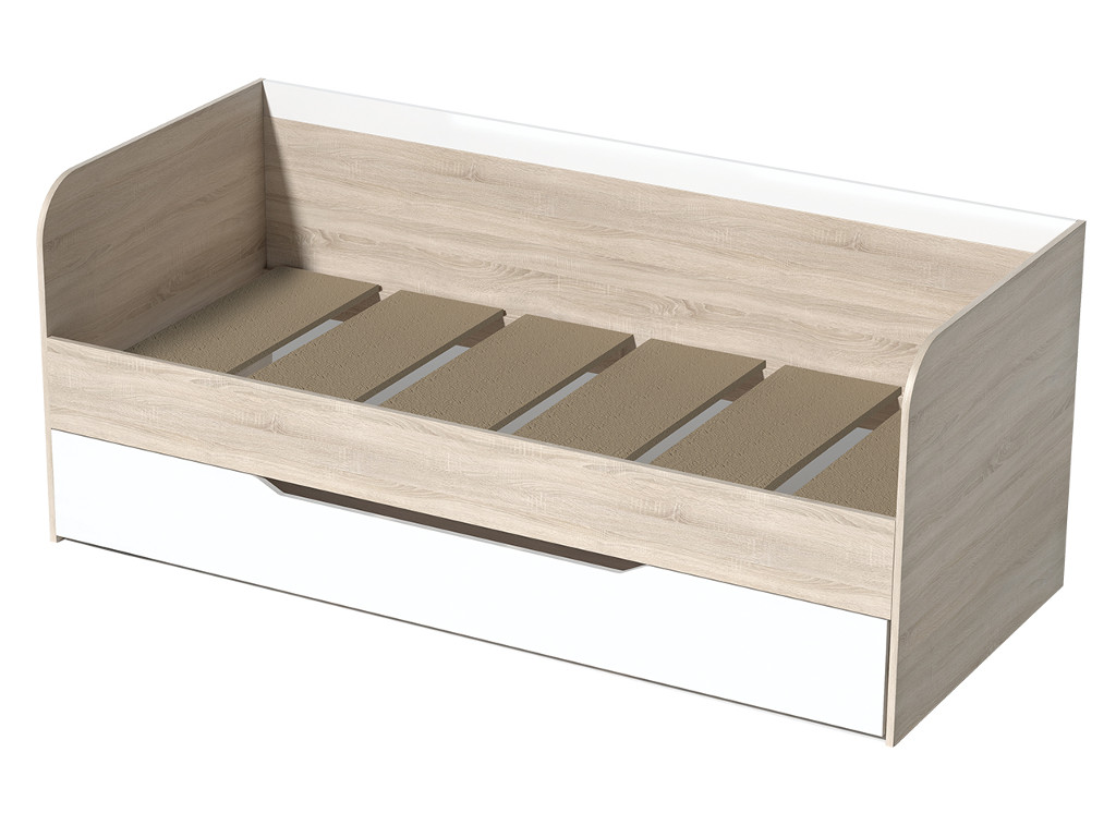 - Кровать с большим выдвижным ящиком с возможностью использования как в целях хранения вещей, так и в качестве дополнительного спального места.