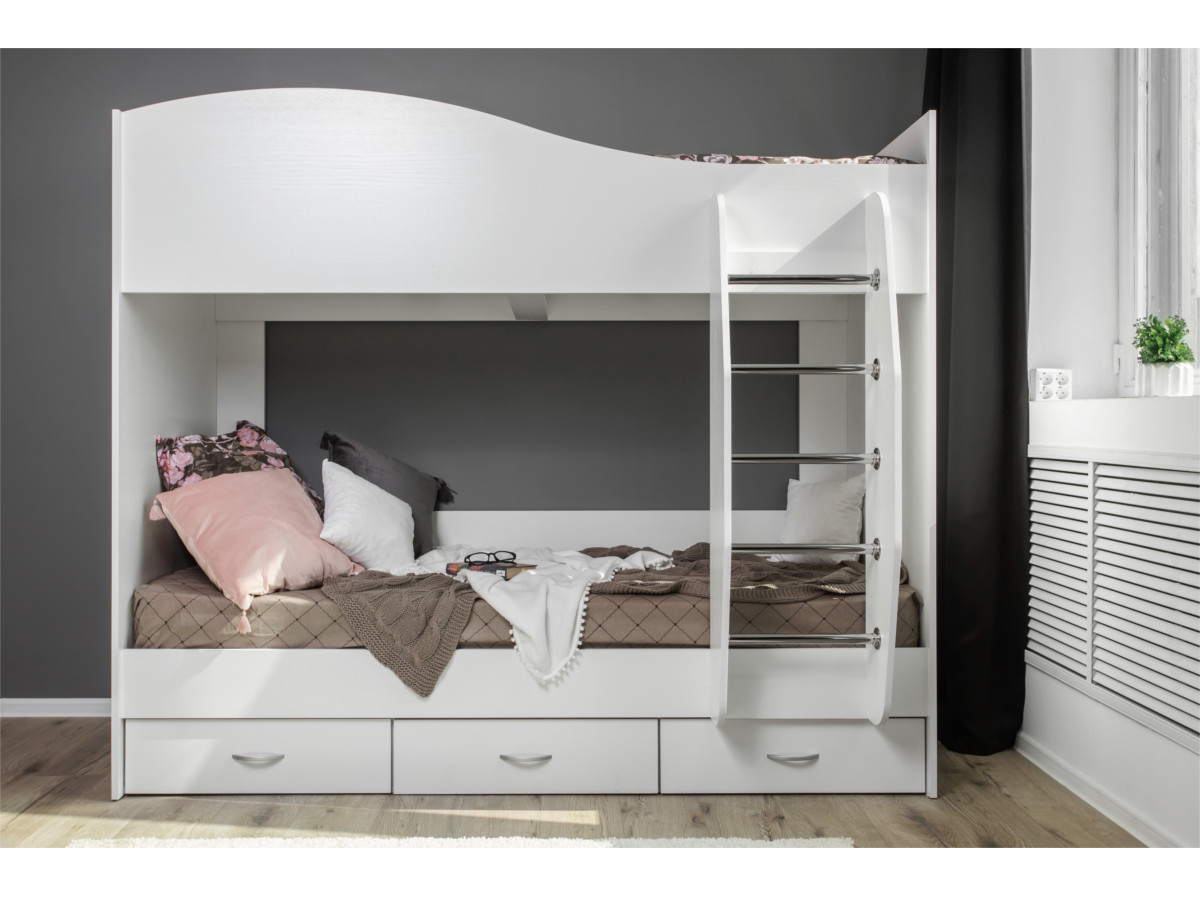 - Кровать Mamamia двухъярусная с ящиками КР-05 Белый