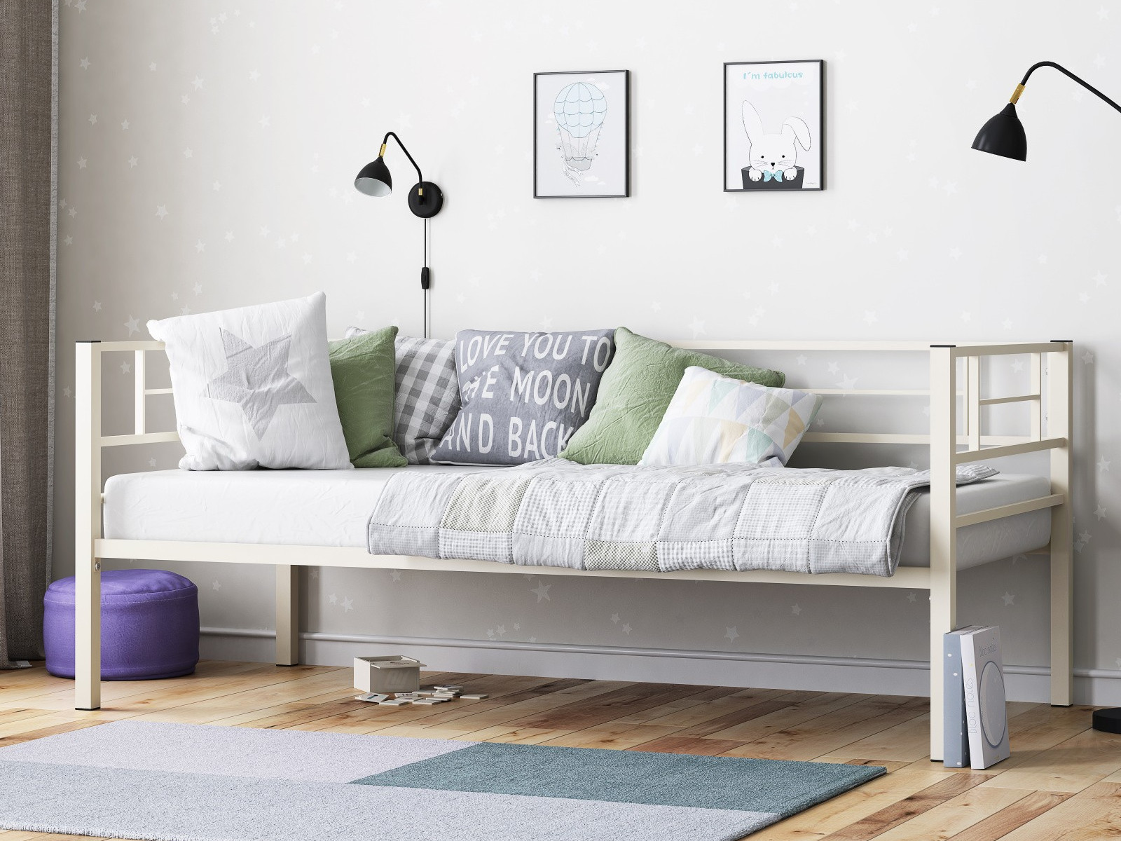 - Кровать металлическая Лорка Слоновая кость