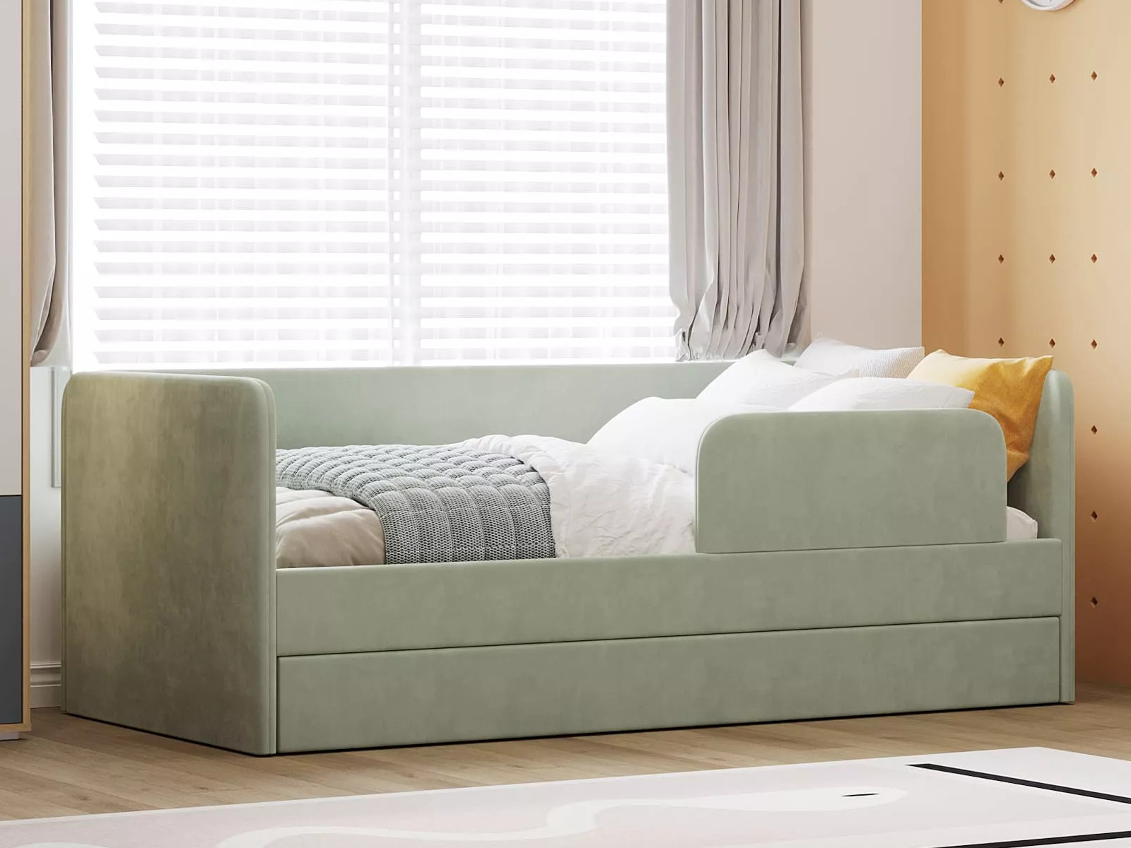 Выдвижной ящик можно использовать в качестве дополнительного спального места (разместив дополнительный беспружинный матрас 1900 х 800 х 140 мм) или для хранения белья и игрушек.