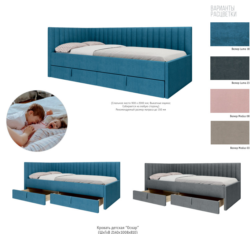 - Кровать Оскар велюр luma 18