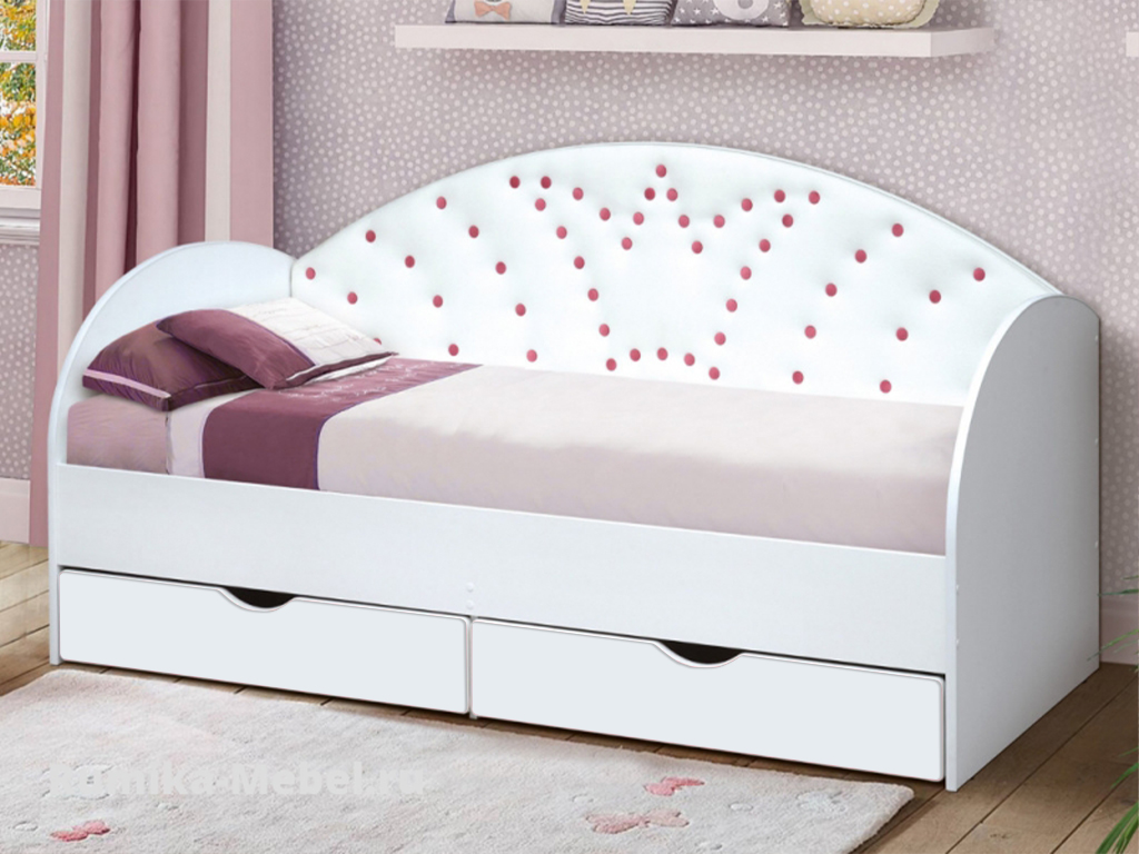 - Кровать с продольной мягкой спинкой Корона №4 800х1900 мм белая