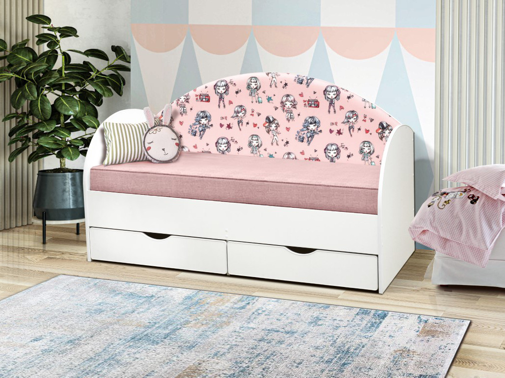 Кровать с продольной мягкой спинкой Софа №11 девчонки