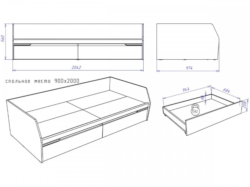 Спальное место: 900*2000 мм