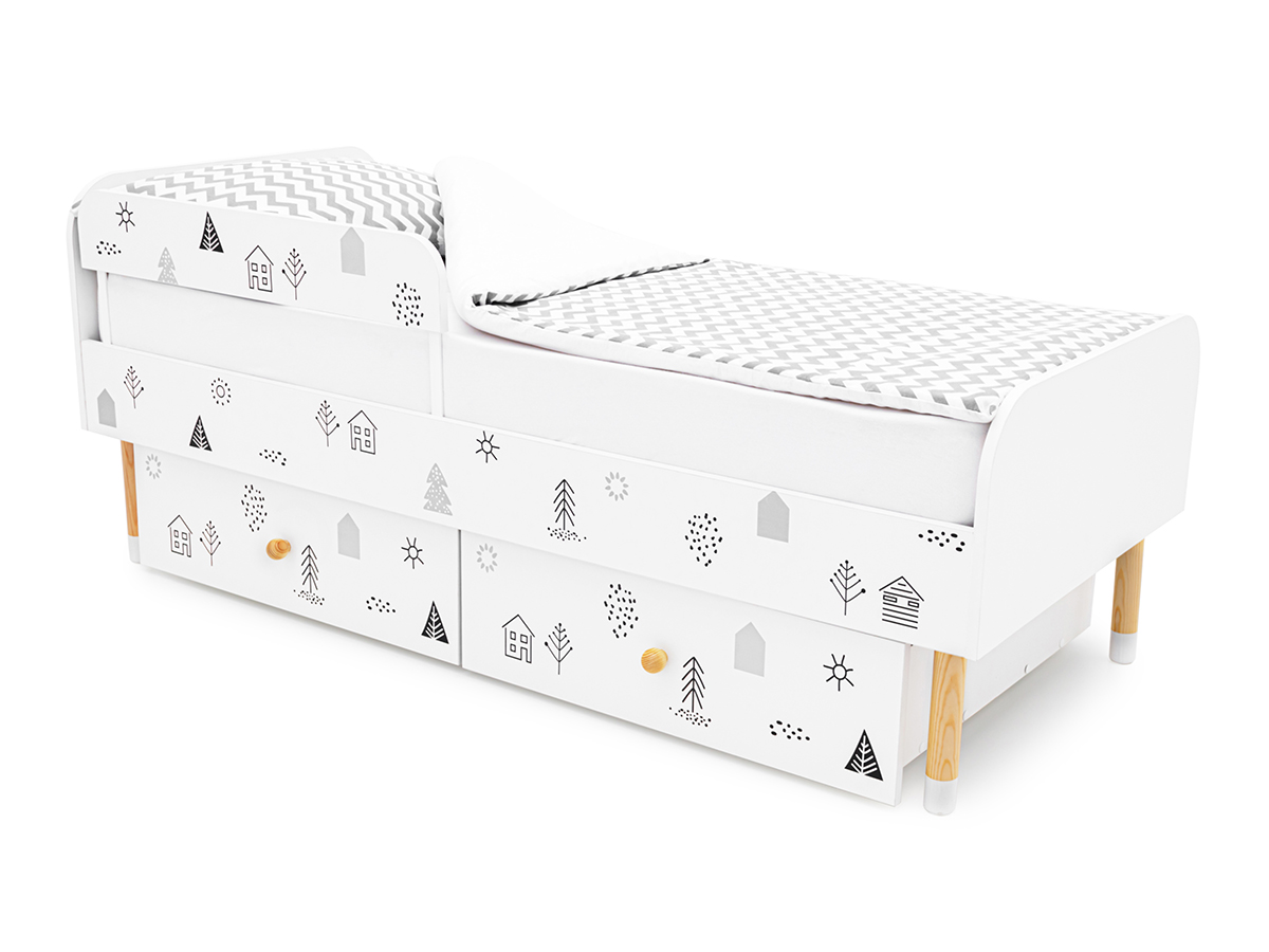 - Кровать Stumpa Классика с бортиком и ящиками Домики