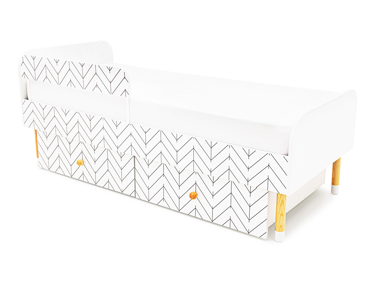 Кровать Stumpa Классика с бортиком и ящиками Ёлочки