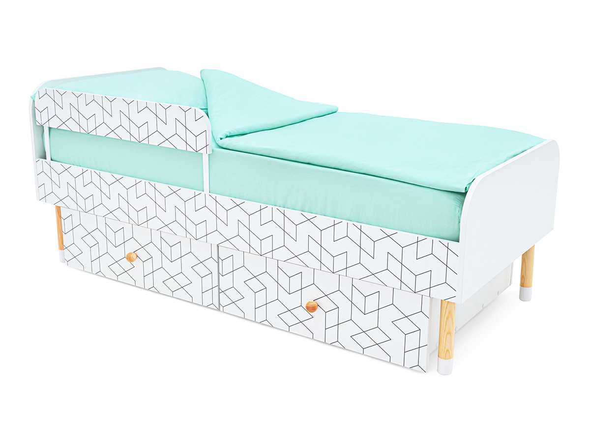 - Кровать Stumpa Классика с бортиком и ящиками Кубики