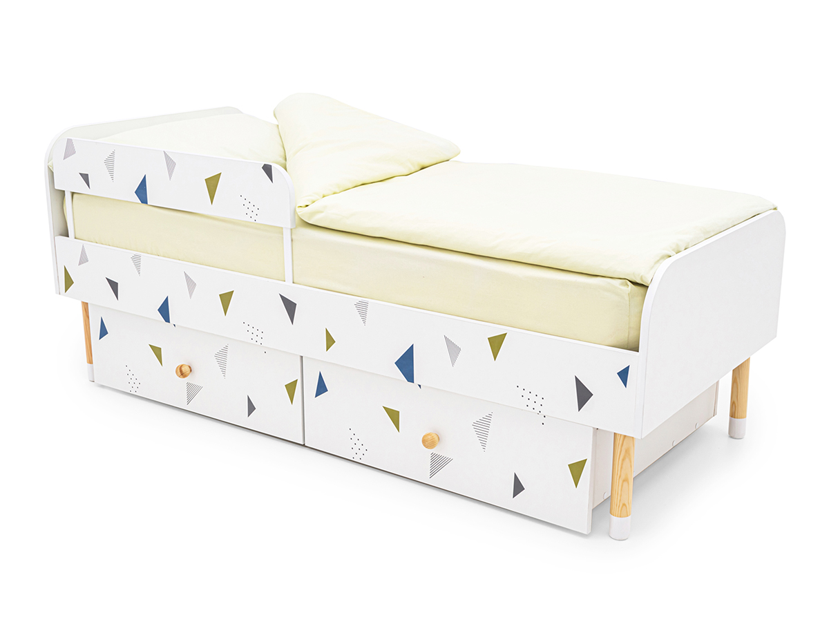 - Кровать Stumpa Классика с бортиком и ящиками Треугольники зеленый, синий