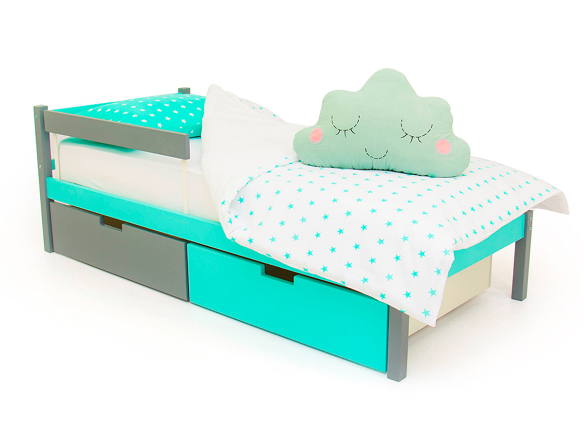 - Кровать Svogen classic с ящиками и бортиком графит-мятный