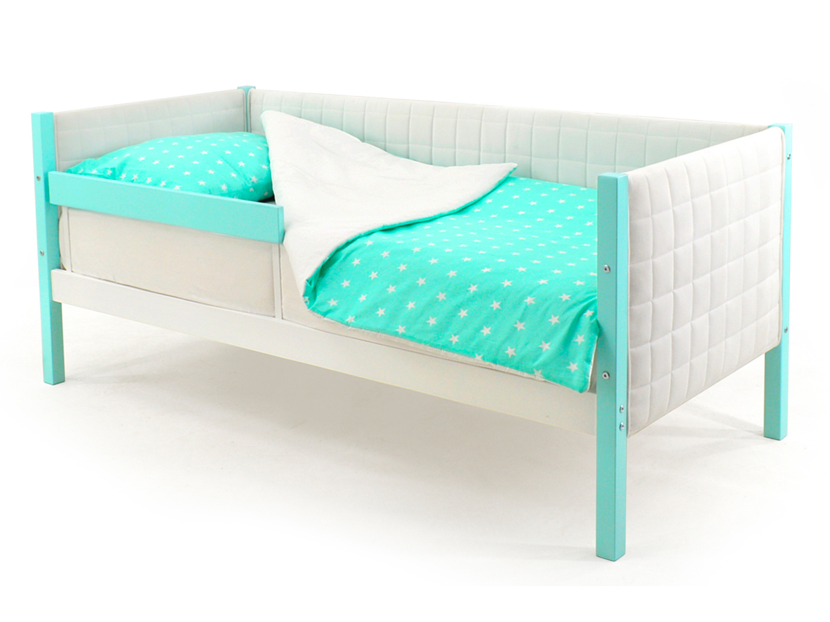 - Кровать-тахта мягкая Svogen с бортиком мятно-белый