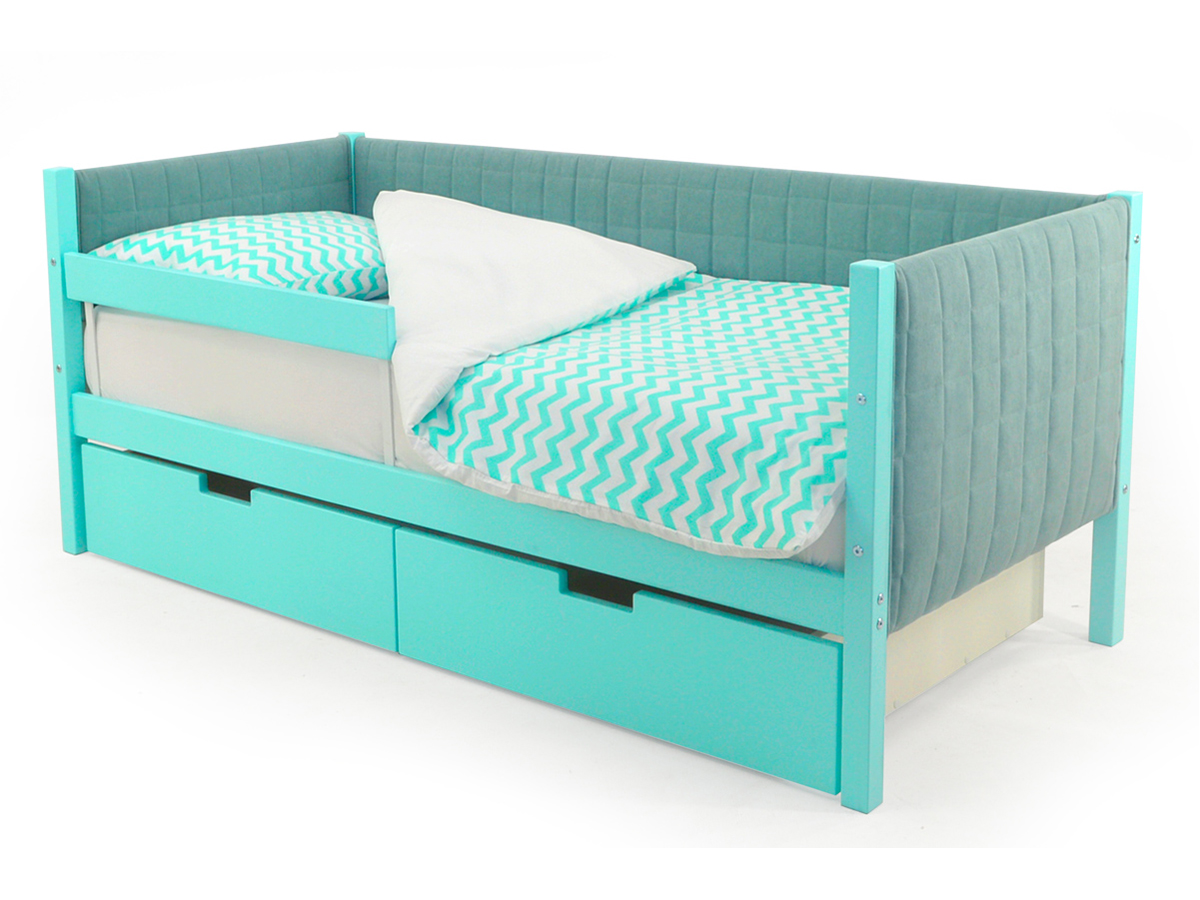 Кровать-тахта мягкая Svogen с ящиками и бортиком мятный