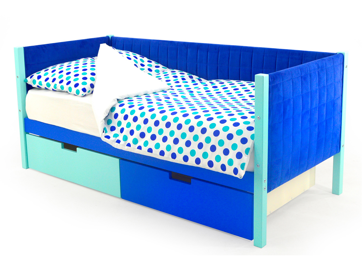 Кровать-тахта мягкая Svogen с ящиками мятно-синий