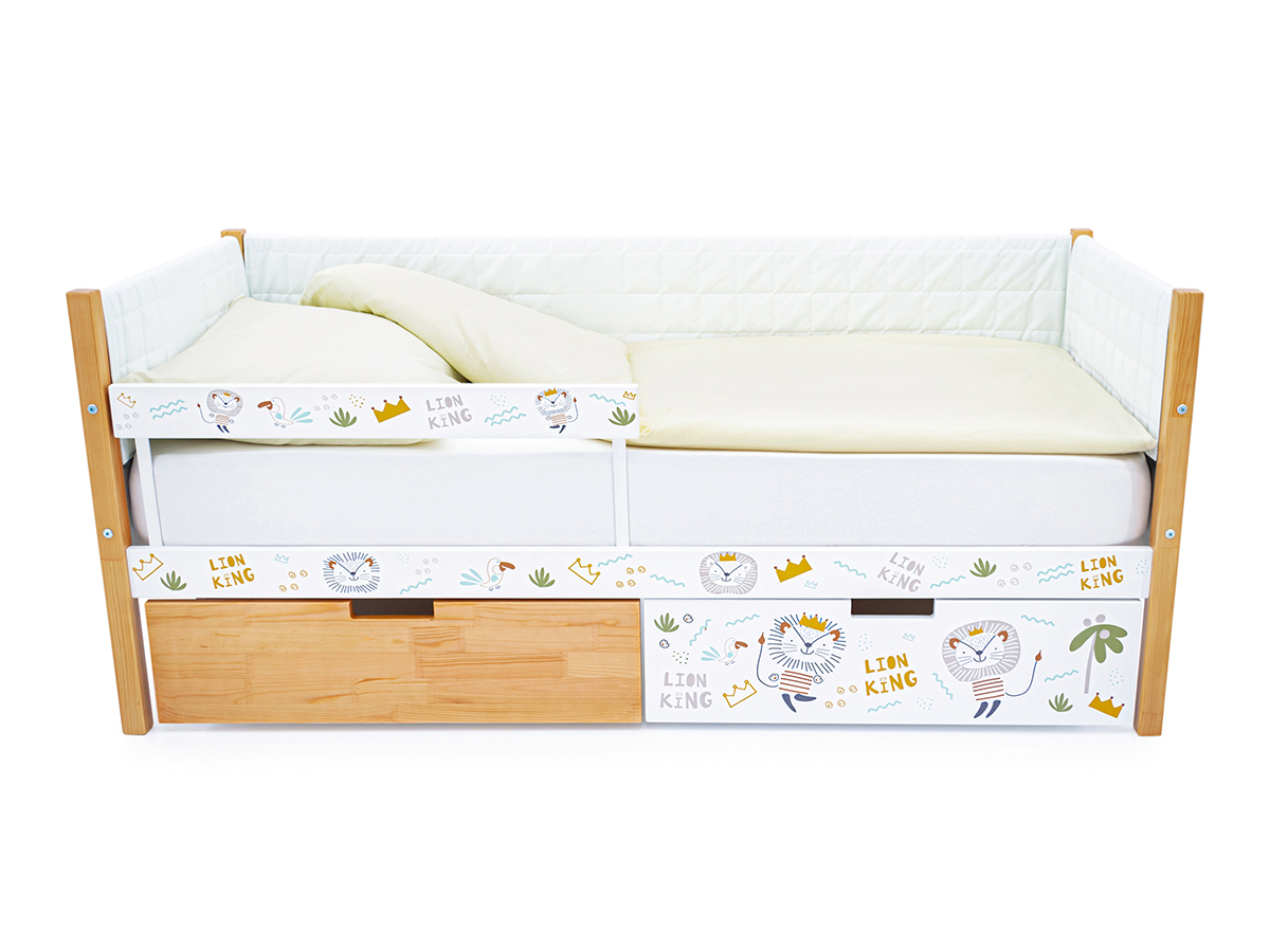 Кровать-тахта Svogen мягкая с ящиками и бортиком с фото дерево/львята