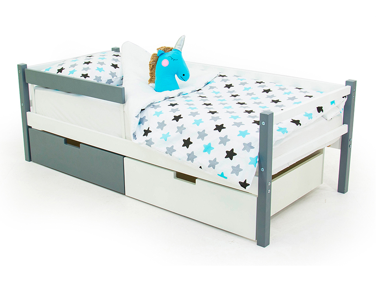 В комплекте: кровать + 2 ящика + бортик