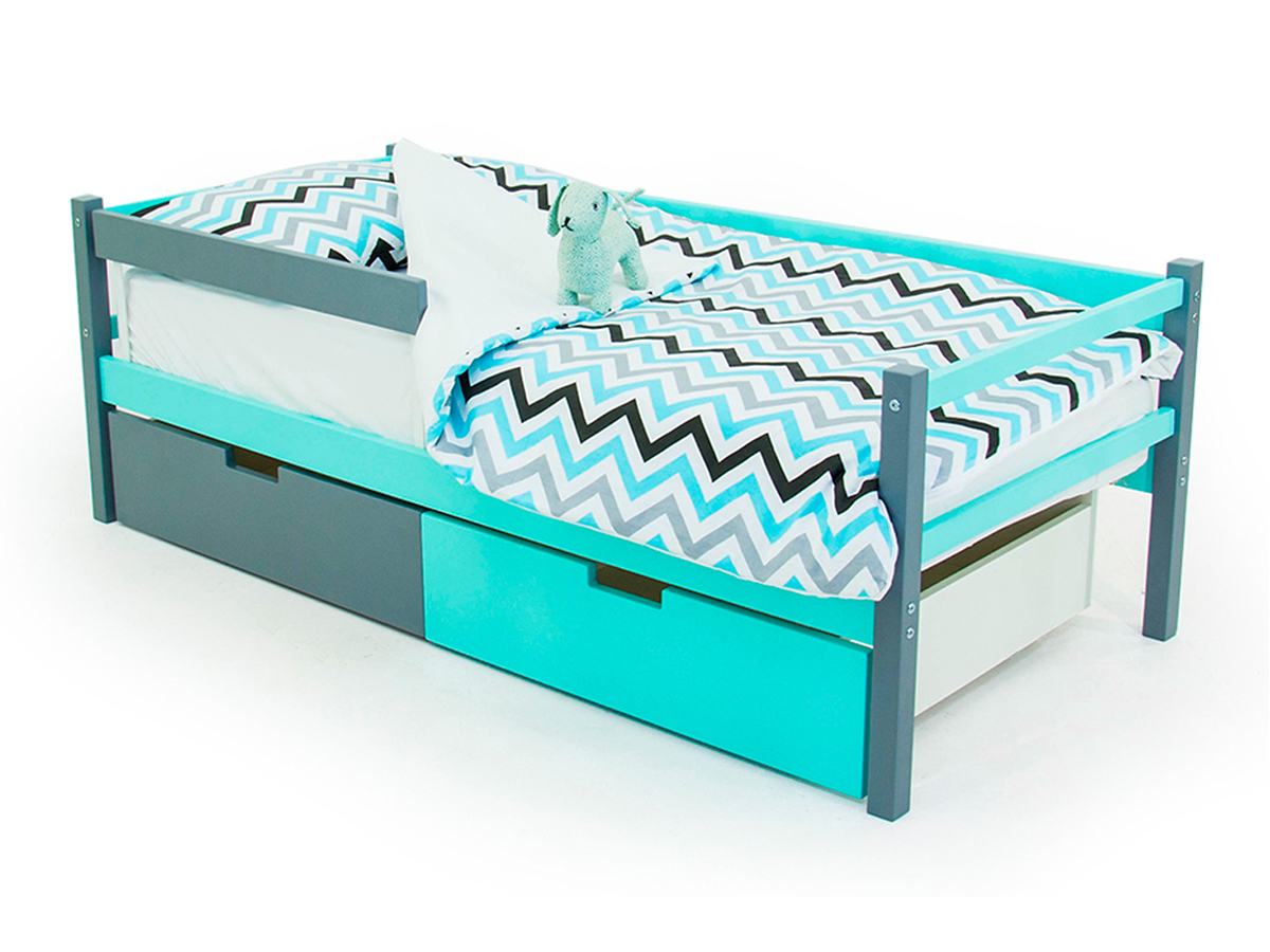 - Кровать-тахта Svogen с ящиками и бортиком графит-мятный