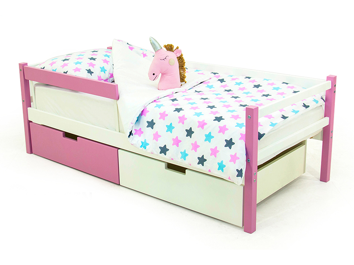 Кровать-тахта Svogen с ящиками и бортиком лаванда-белый