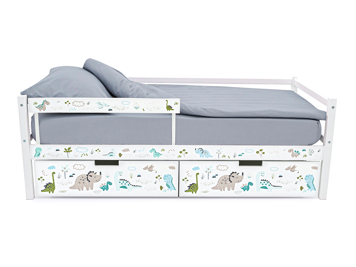 - Кровать-тахта Svogen с ящиками и бортиком с фотопечатью белый/динозаврики