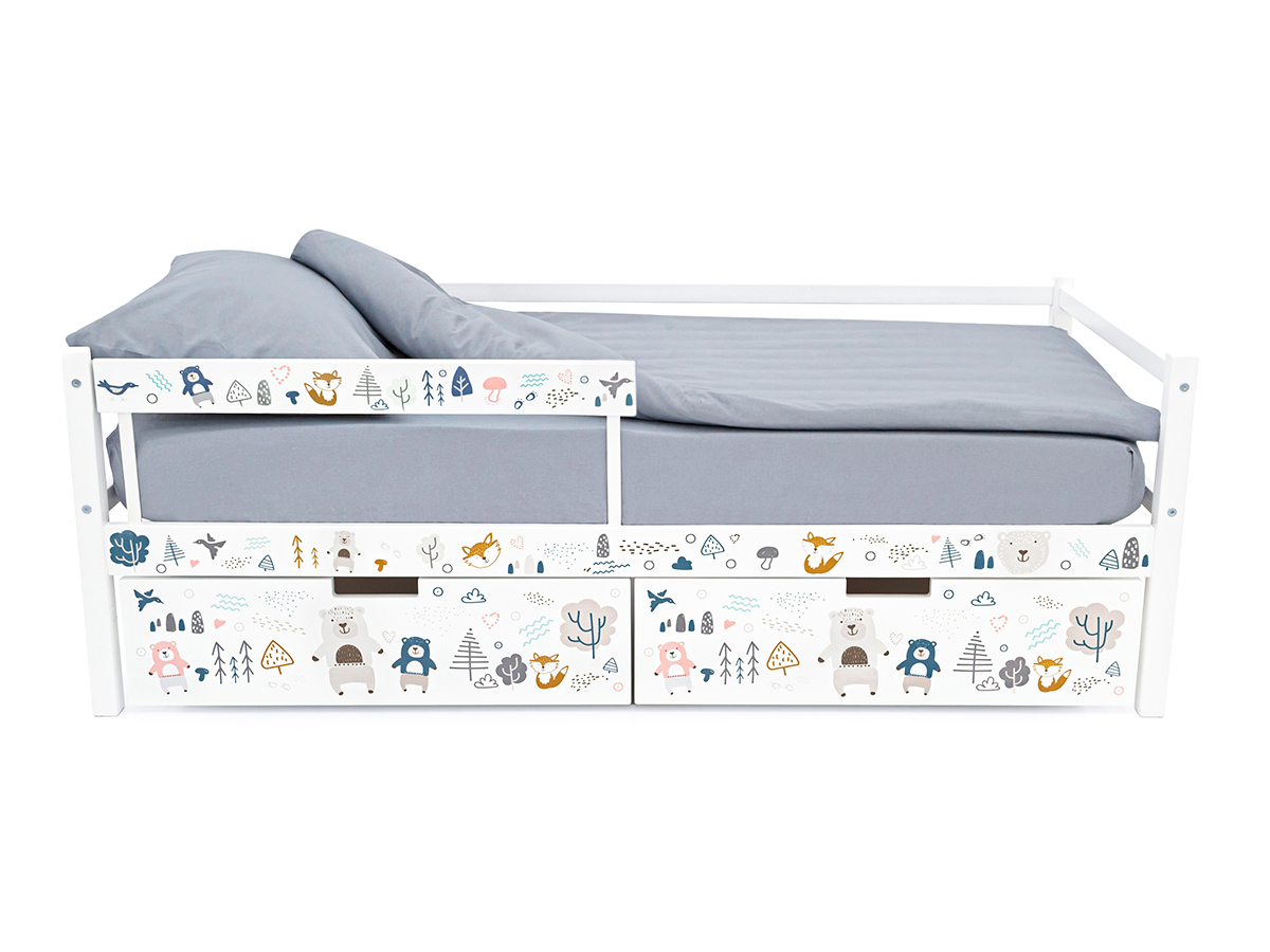 Кровать-тахта Svogen с ящиками и бортиком с фотопечатью белый/мишки