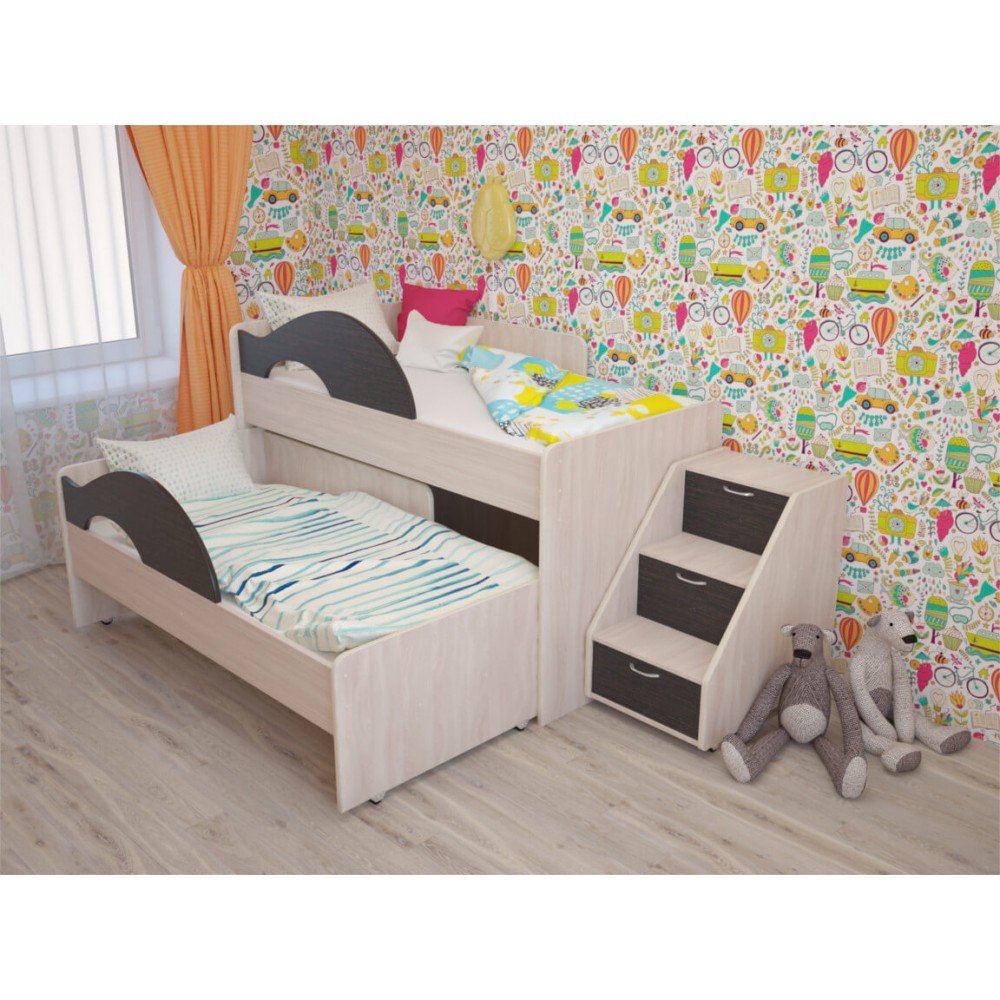 Кровать 2-х ярусная выкатная с ящиком и лестницей Радуга венге