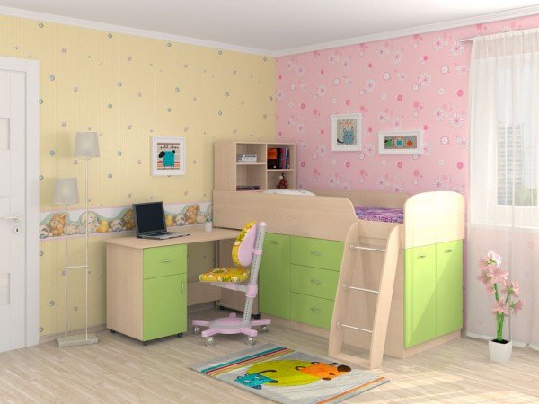 - Кровать-чердак Дюймовочка-1 салатовый