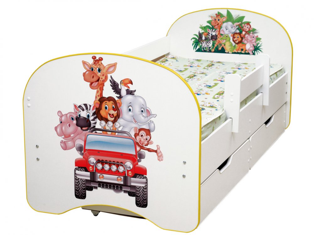 - Кровать детская с фотопечатью с 2-мя ящиками Зоопарк