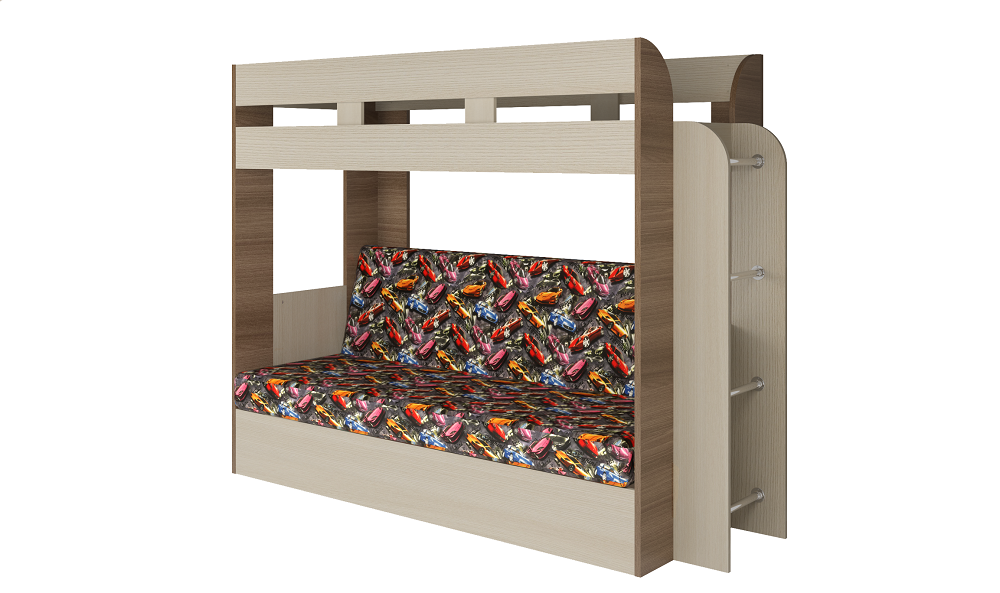 - Кровать двухъярусная Карамель 75 Ясень Машинки