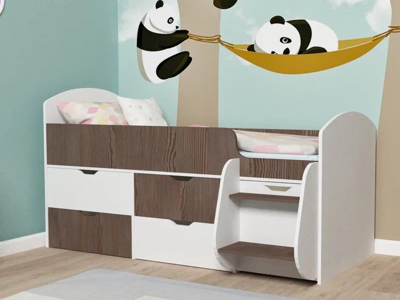 Кровать Малыш-7 белое дерево-анкор темный