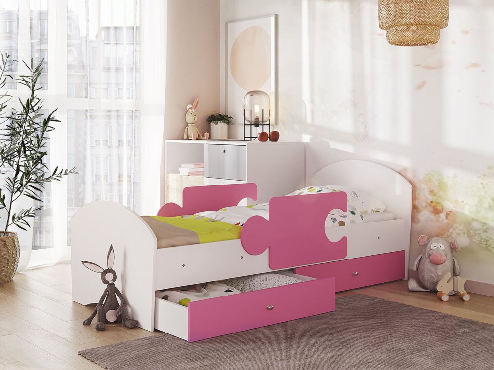 - Кровать Мозаика с бортиками и ящиком белый с розовым