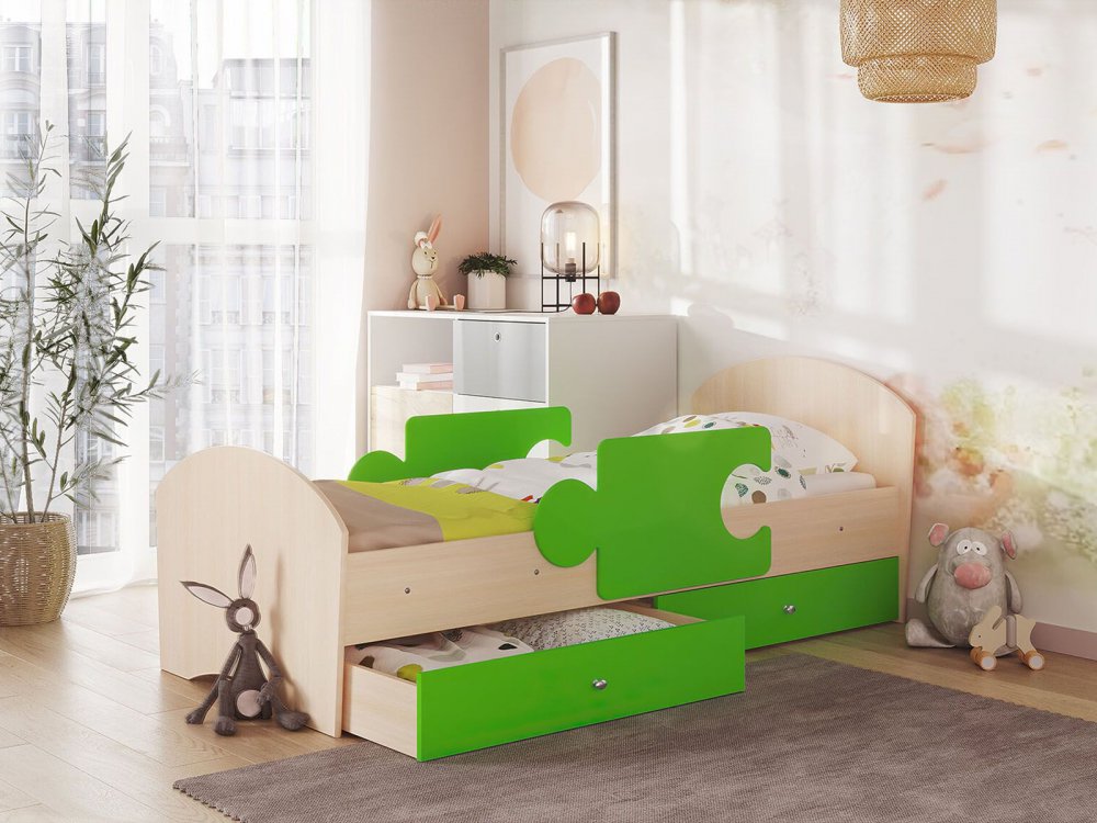 - Кровать Мозаика с бортиками и ящиком млечный дуб-лайм