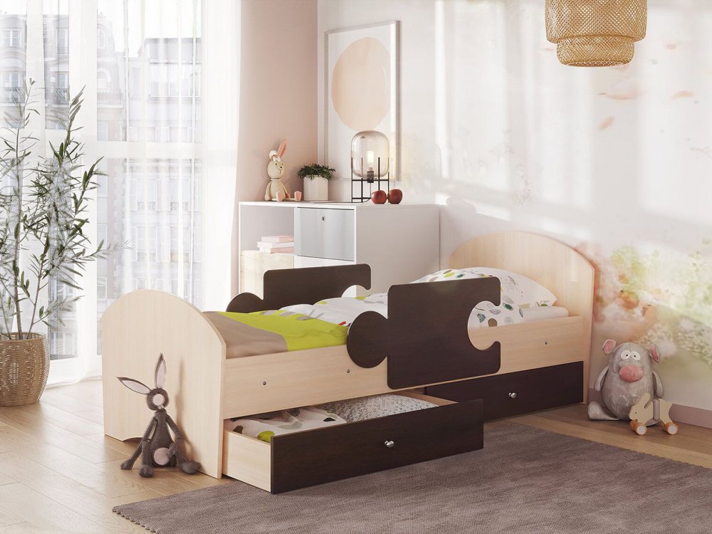 - Кровать Мозаика с бортиками и ящиком млечный дуб с венге