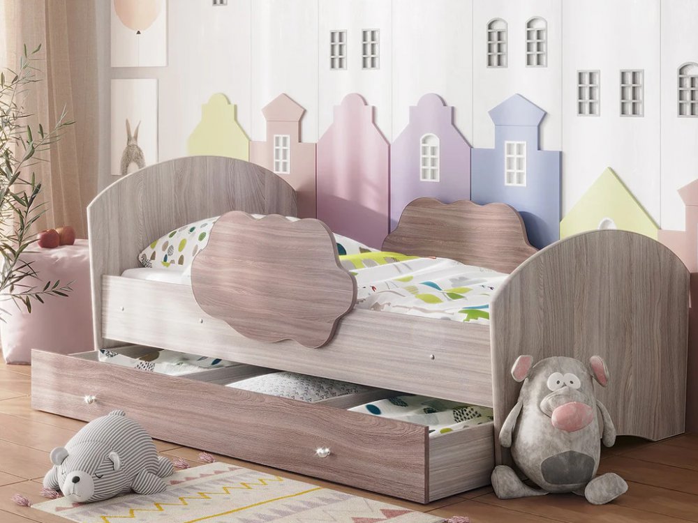 - Кровать Тучка с бортиками и ящиком ясень шимо