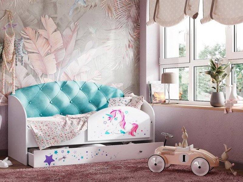 - Кровать Звездочка с бортиком Белый-бирюзовый