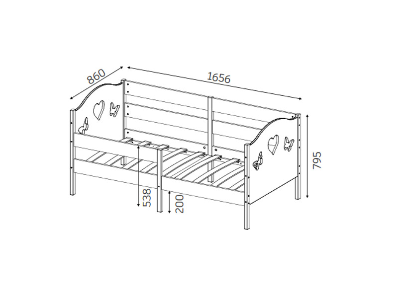 Кроватка-софа Сердечки-Бабочки 800х1600 мм