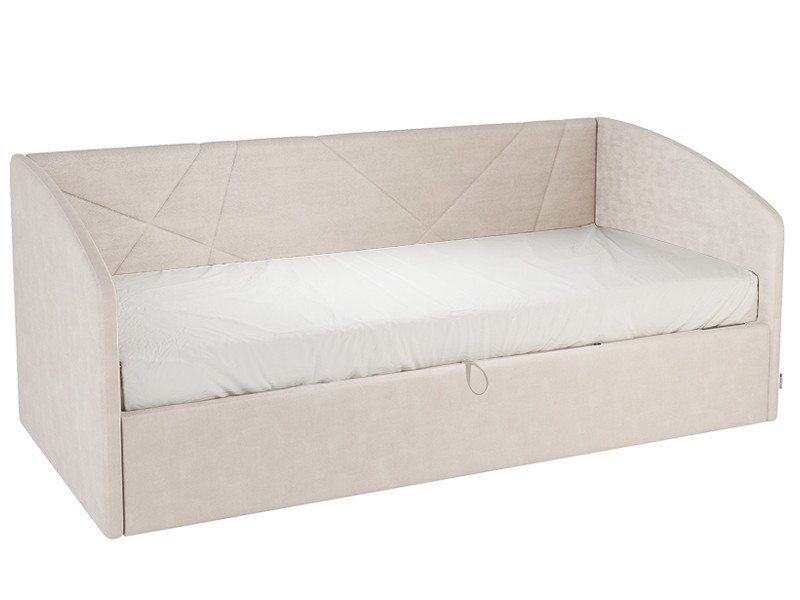 Основание подъемное входит в комплект кровати, петелька для подъема в цвет ткани на корпусе. Кровать имеет огромный ящик для хранения.