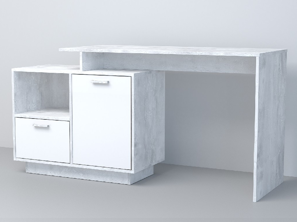 Стол письменный Эго Ст-2 бетон светлый/белый глянец на цоколе