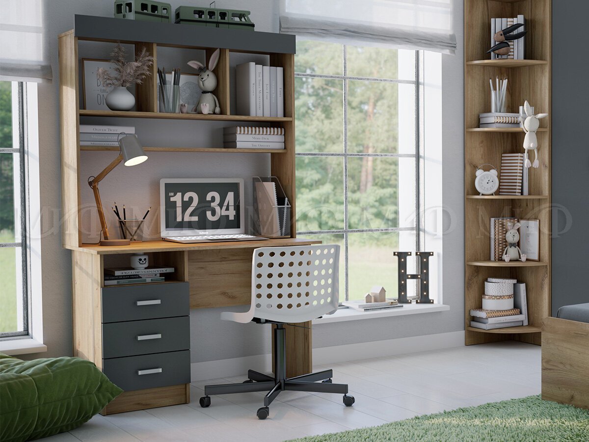 - Стол письменный с надстройкой Мартина Графит, Дуб крафт