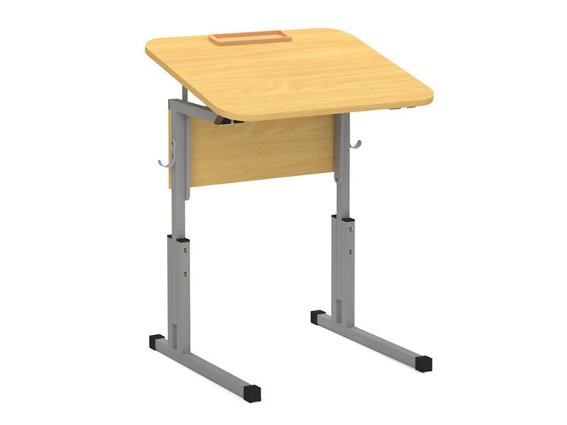 Одноместный ученический стол с закругленными углами, регулируемый по высоте.