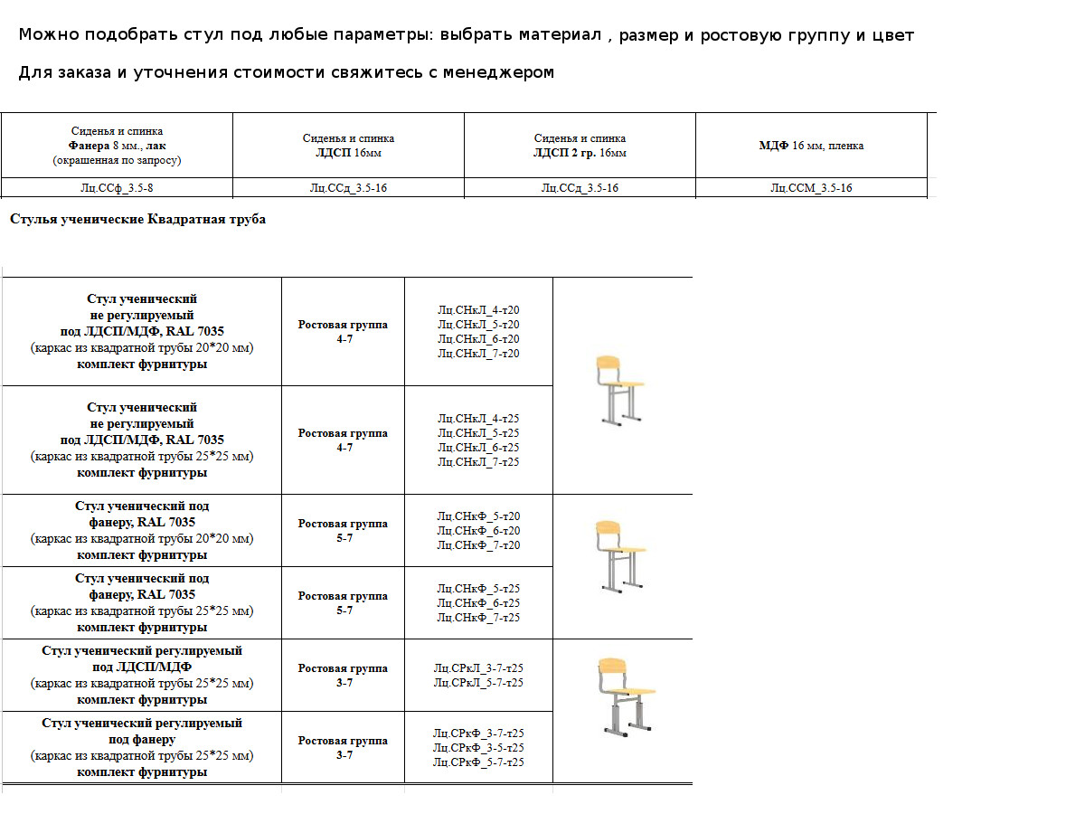 - Стул ученический нерегулируемый Лц.СН-7-т20 Лицей