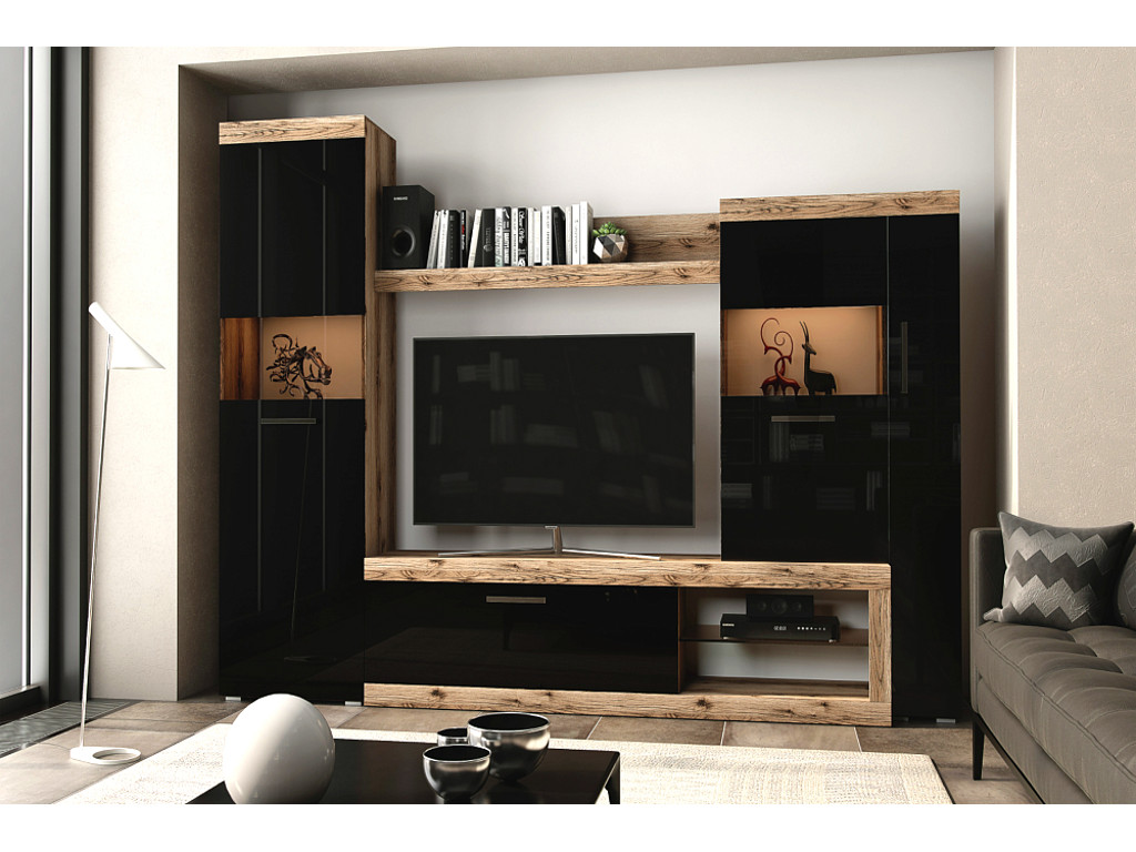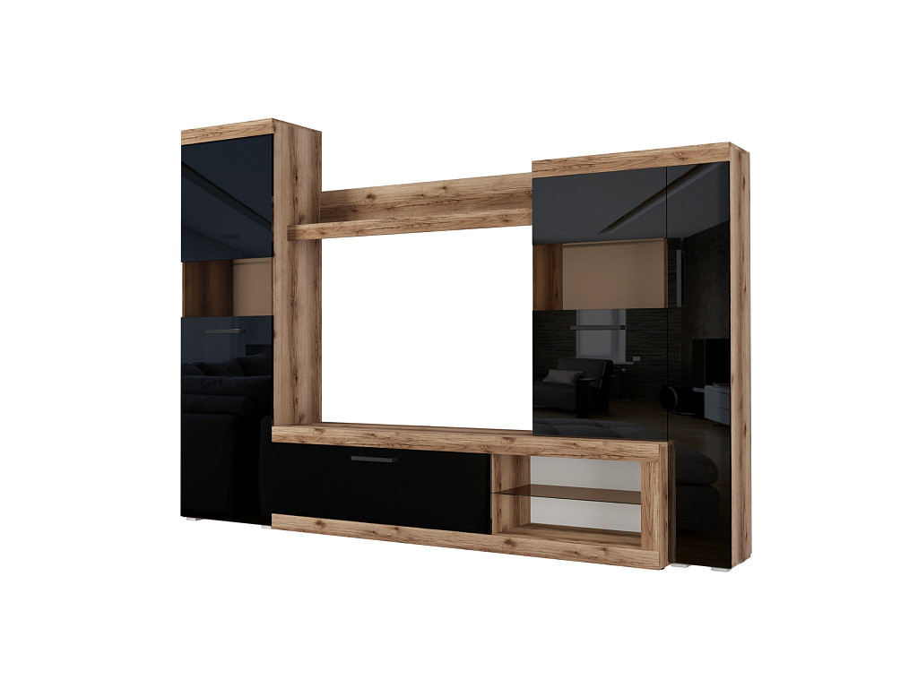 - Гостиная Бастон Дуб Делано-Черный глянец