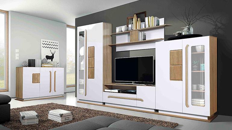 Цена за комплект на фото - Шкаф 30.02-02 Дора, Тумба для ТВ 30.04-02 Дора, Полка навесная 30.05-02, Шкаф 30.03-02, Комод 30.06-02 Дора