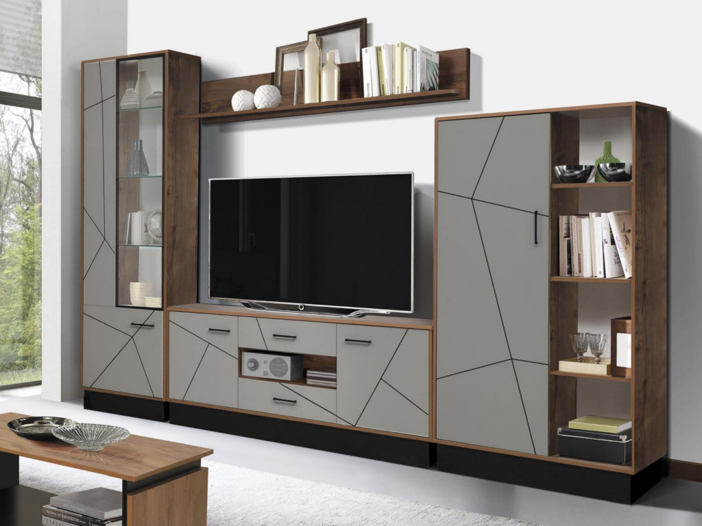 Цена за комплект: Шкаф - пенал 54.01 (левый), Тумба под ТВ 54.04 (1600), Полка навесная 54.10 (1600), Шкаф комбинированный 54.06