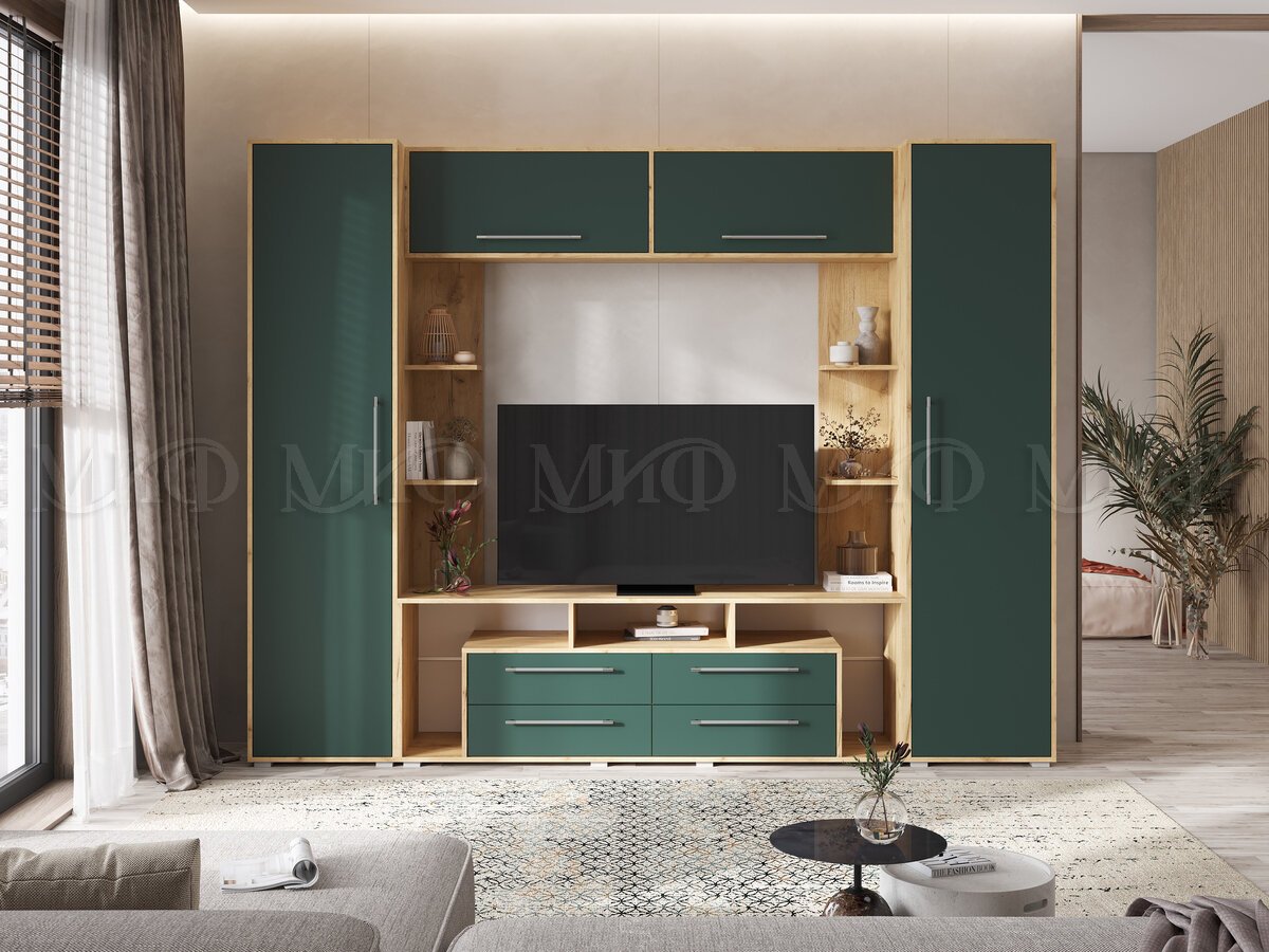 - Гостиная Гармония Браш Мени Грин, Дуб Крафт
