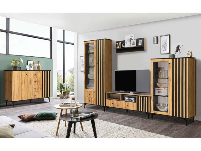 - Полка навесная 51.09/(дуб вотан / черный) ( 0,017 м3; 9,4 кг) 320x1282x176 мм
