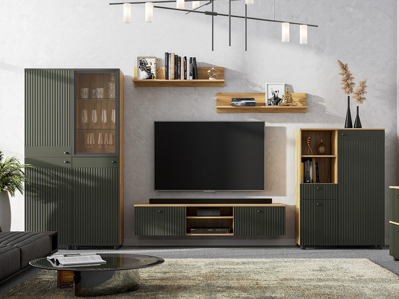 - Гостиная Милан Дуб Золотой/Олива Софт