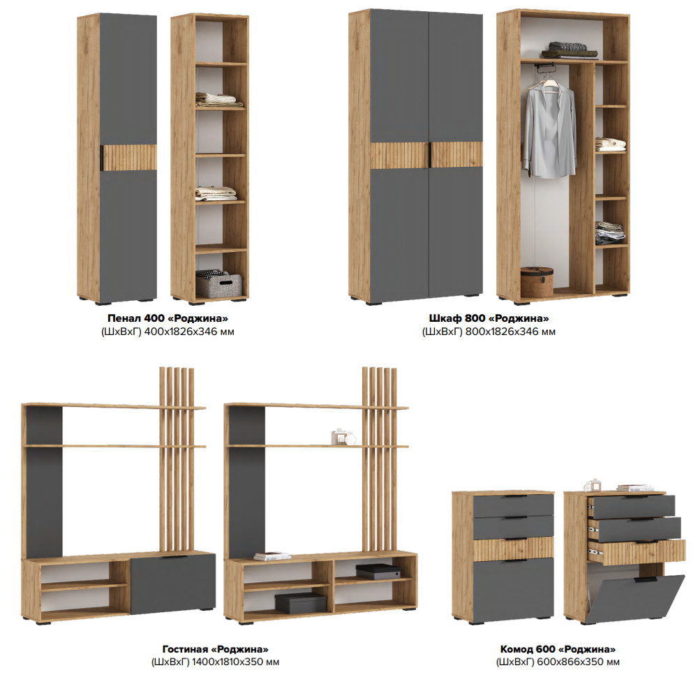 Цена за комплект : Гостиная, Комод (600), Шкаф (800), Пенал (400)