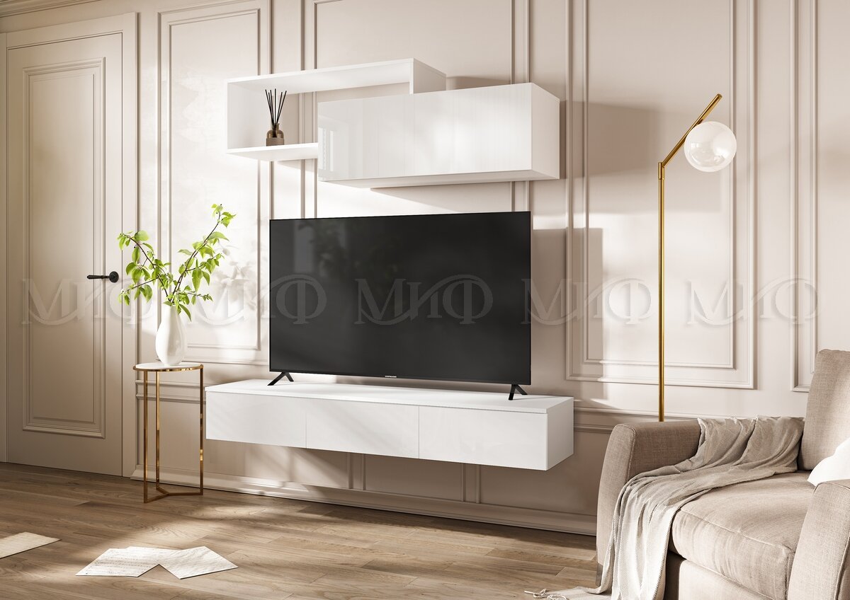 Цена за комплект: Тумба ТВ подвесная , Полка 2-х ярусная