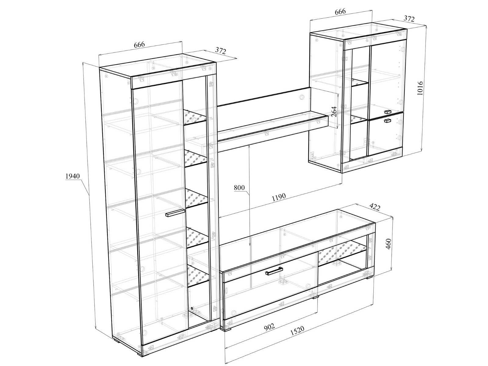 - Витрина универсальная 666(Ш) х 1034(В) х 376(Г) мм