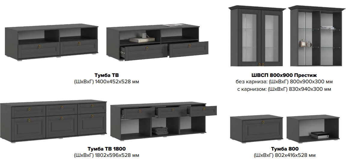 - Гостиная Престиж-1 Графит структурный